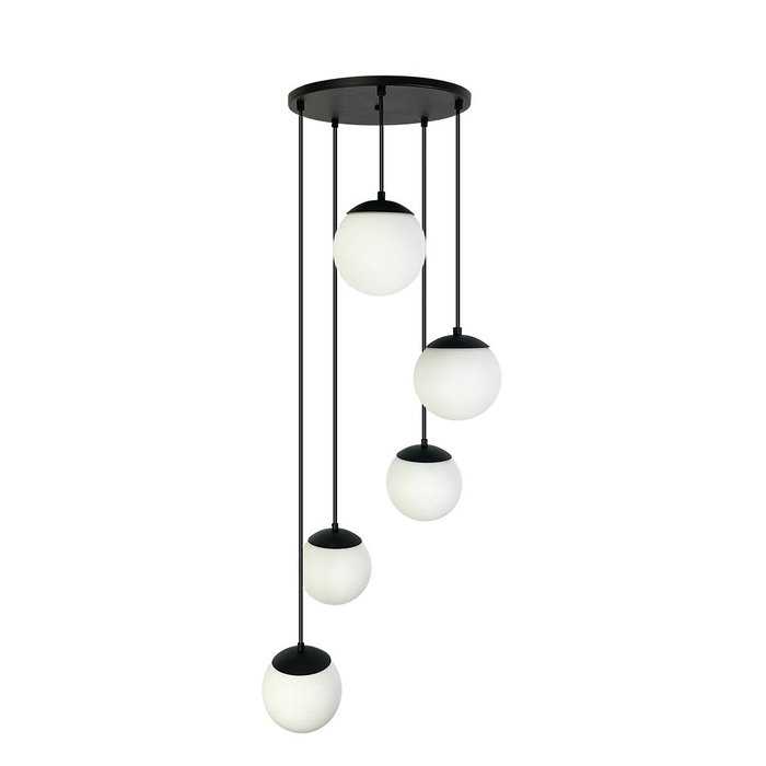 PENDENTE SPHERA CASCATA PRETO C/ 5 GLOBOS LEITOSO Enerlux 4 Metros PRETO