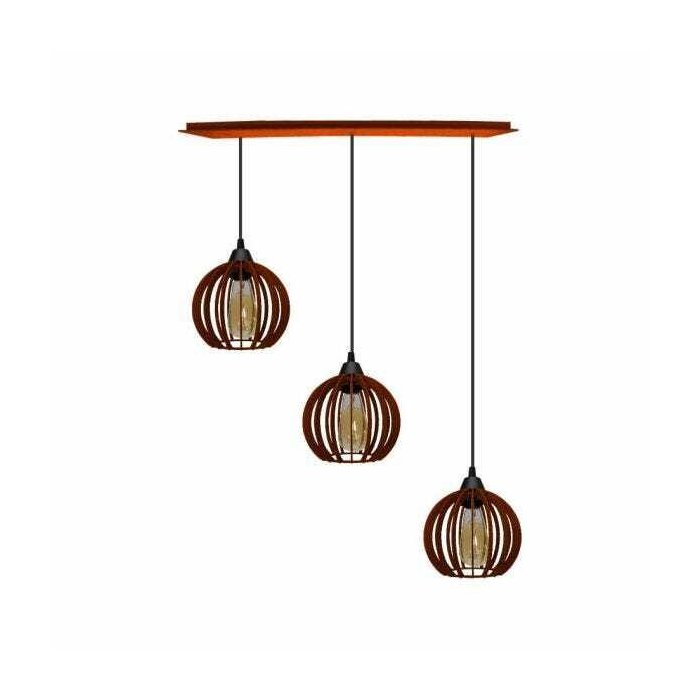 – Este produto é composto por 3 pendentes, 3 cabos com bocal e canopla em madeira.