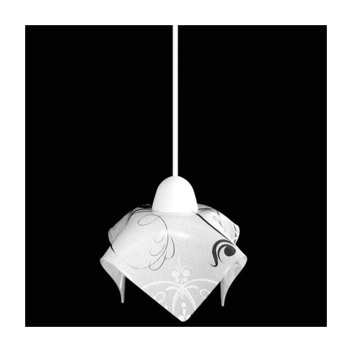 | Composição | Pendente de base branca com vidro floral tabaco. Possui haste regulável de altura. |