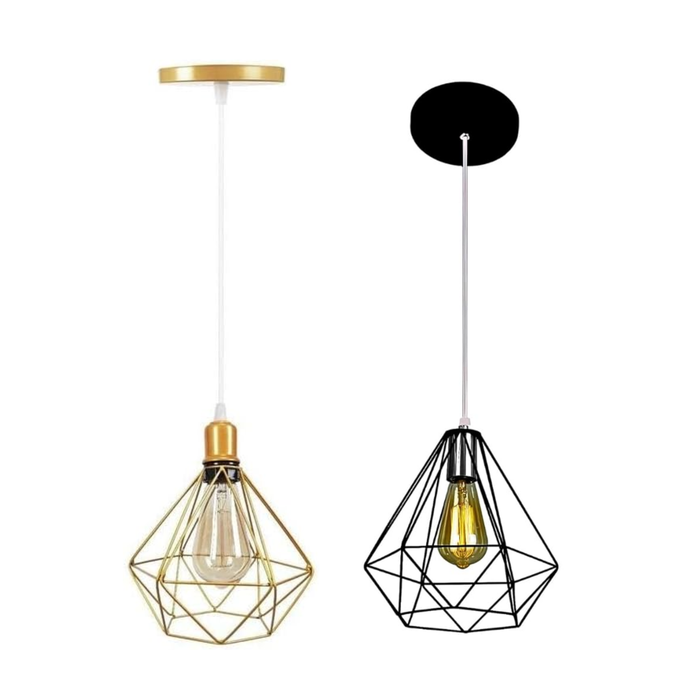 Pendentes Luminárias de Teto Lustre Modelo Diamante Dourado & Rose Gold Kit C/2 preta