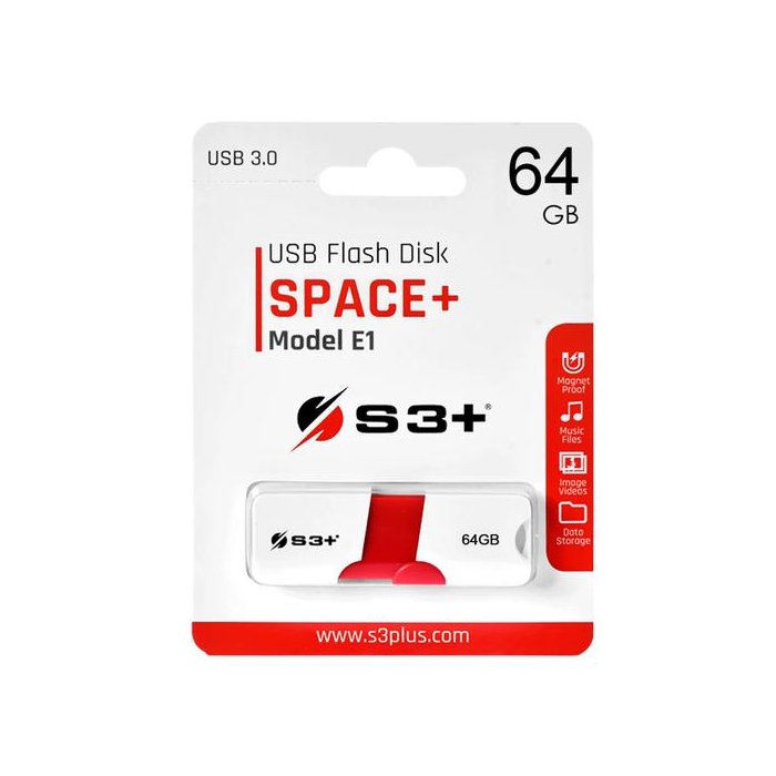 Pendrive S3+ 64GB Space+ / Modelo E1 / USB 3.0 - Branco e Vermelho (S3PD3003064BK)