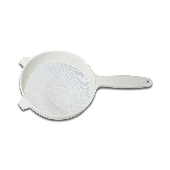 A estrutura plástica resistente torna a peneira fácil de manusear e limpar, enquanto sua tela de poliéster é resistente a rasgos e não absorve líquidos. Aro com suportes na extremidade para apoiar a peneira facilitando a utilização. Cabo com detalhe de apoio, proporcionando maior firmeza e segurança no manuseio e também com furo passante para pendurar o utensílio. Praticidade e segurança que você necessita.