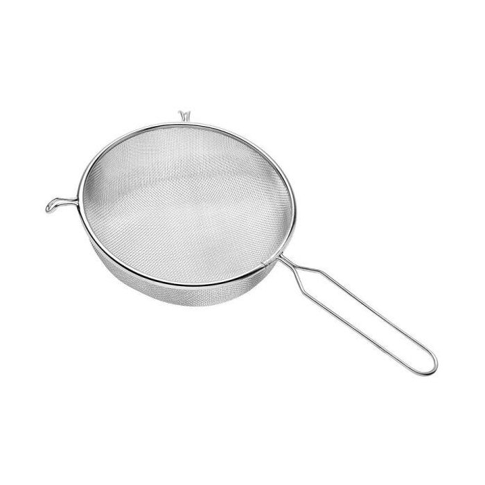 Estas peneiras finas permitem escorrer os líquidos e são ótimas para preparar compotas de frutas, retendo com eficiência peles e sementes. Outra vantagem é o gancho lateral, que permite apoiar a peneira sobre um bowl enquanto a água escorre. Em aço inox, com 16cm de diâmetro, tem construção robusta e pode ser pendurada.