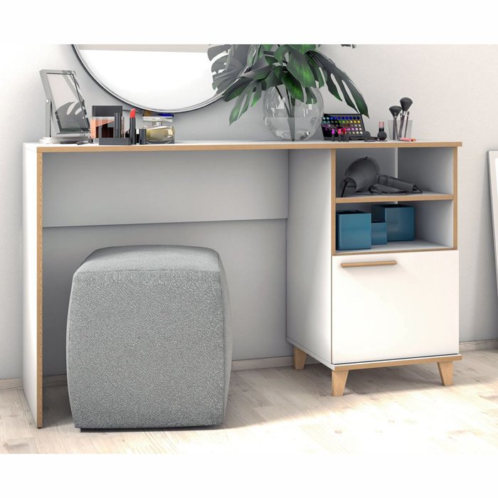 A penteadeira BPE 67 veio para tornar realidade o sonho de muitas mulheres: ter um cantinho especial para se arrumar!Além disso, o design desta peça deixa seu ambiente com uma decoração delicada, elegante com um charme todo especial. Os pés são fabricados em madeira pinus e possuem a mesma cor da borda. São dois nichos externos, uma prateleira e uma porta com excelente espaço a disposição para deixar seus itens sempre bem organizados. A qualidade se destaca neste móvel: fabricado em MDP 15mm, conta com acabamento em BP fosco, que oferece uma proteção a mais contra riscos, manchas e umidade. Após montada, possui as seguintes medidas: 1,35m de largura, 44,5cm de profundidade e 79cm de altura.