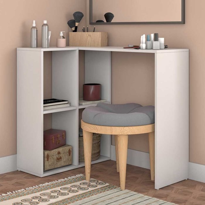 O(a) Penteadeira 4 Nichos Bpe42 Branco - Brv Móveis é produzido em MDP na escala de brilho Fosco, e possui um grau de dificuldade de montagem: Médio.