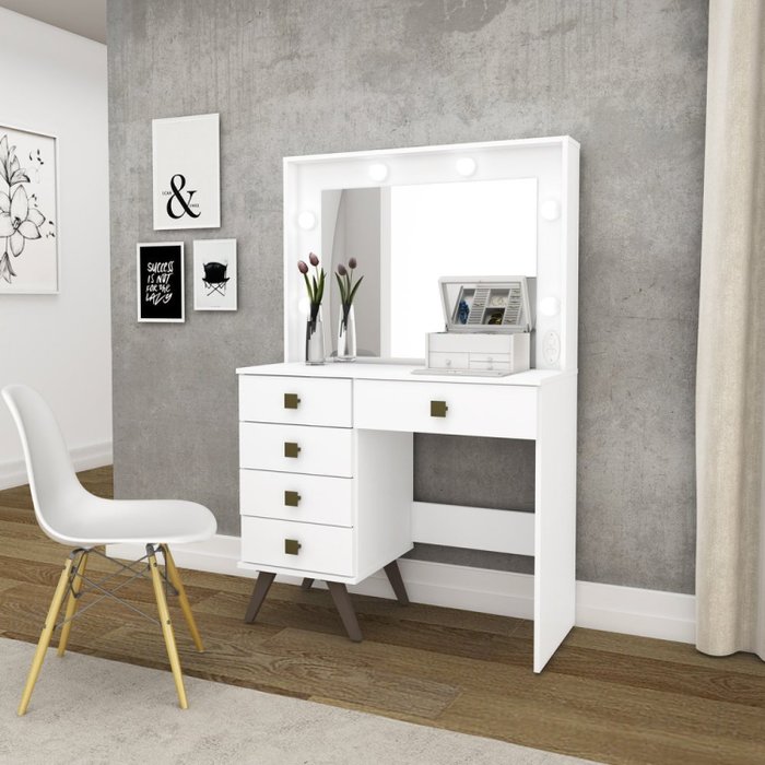 Penteadeira 5 Gavetas com Iluminação Tomada Embutida Branco