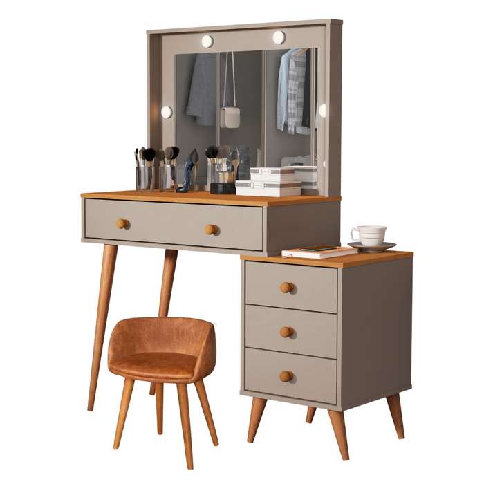 Penteadeira Agata com Banqueta Amsterdã Cor Nature com Griss Nature