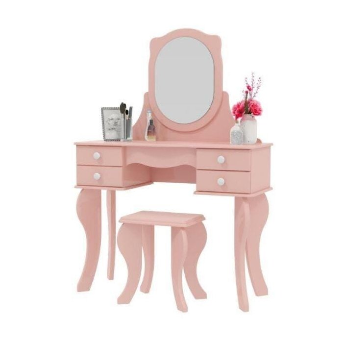 Penteadeira Princesa com Banqueta, 4 Gavetas e Espelho - Rosa