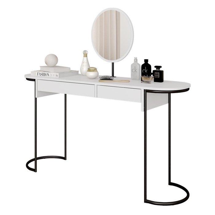A Penteadeira Aysha com 2 gavetas e espelho no estilo industrial um design moderno, suas linhas limpas e estrutura robusta trazem um toque urbano ao ambiente. O espelho integrado completa a peça além de ser um destaque estiloso em qualquer quarto ou closet.
