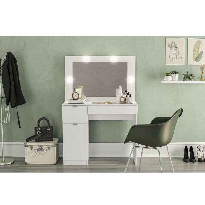 Penteadeira Bahia 4 Lâmpadas Led 2 Gavetas e Tampo de Vidro 190184 Politorno Branco