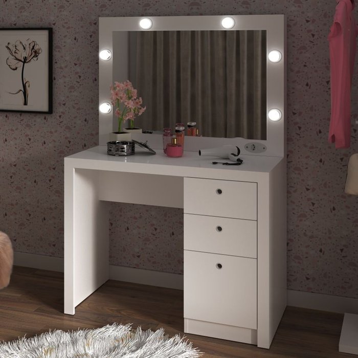 Penteadeira Camarim 3 Gavetas Beauty com Espelho e Bocais para Lâmpada Branco - Panorama Móveis