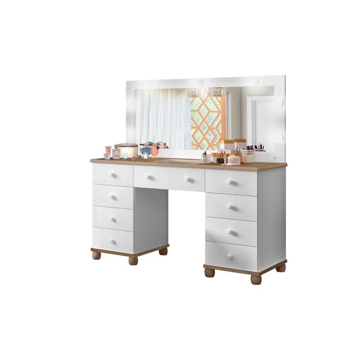 Penteadeira Camarim 9 Gavetas Branca com Nature