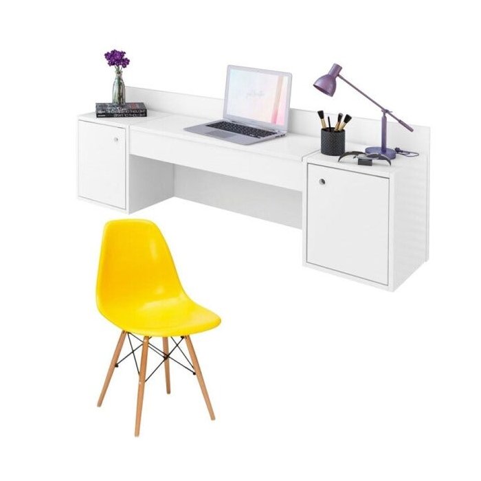 Penteadeira Camarim Atração Branco e Cadeira Charles Amarela - Albatroz