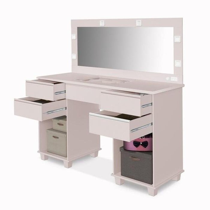 Penteadeira Camarim Barata 5 Gaveta 2 Portas com Espelho Rosê