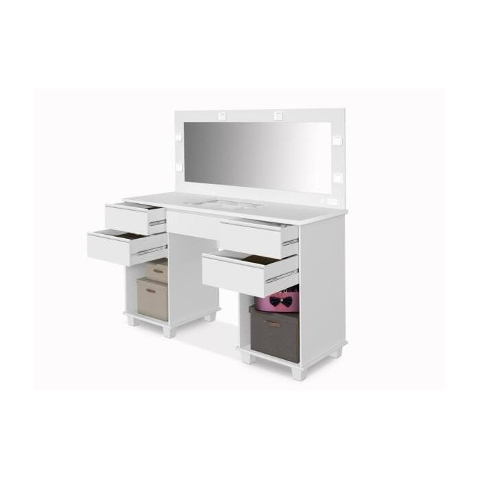 Penteadeira Camarim Clean - Ofertamo A Penteadeira Camarim Clean da Ofertamo tem um design único e diferenciado, agregando charme e beleza ao seu ambiente. Características do produto: 100% MDF trazendo maior qualidade ao produto 5 Gavetas e 2 Portas trazendo mais espaço para separação de seus acessórios Espelho Luminária LED (bivolt) Tampo com vidro trazendo mais beleza e colmeia na gaveta para melhor separação dos seus acessórios Pés em madeira Interruptor para o led Tomada auxiliar Não acompanha banqueta. Dimensões do produto: Altura: 1406 mm / 140,6 cm Largura: 1160 mm / 116,0 cm Profundidade: 450 mm / 45,0 cm A montagem é de responsabilidade do comprador. Apesar de simples e acompanhar manual de montagem, recomendamos que a mesma seja realizada por um profissional ou empresa especializada. Imagens meramente ilustrativas.