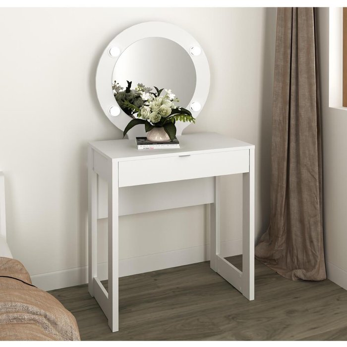 Penteadeira Camarim com 1 Gaveta e Espelho Redondo - Branco