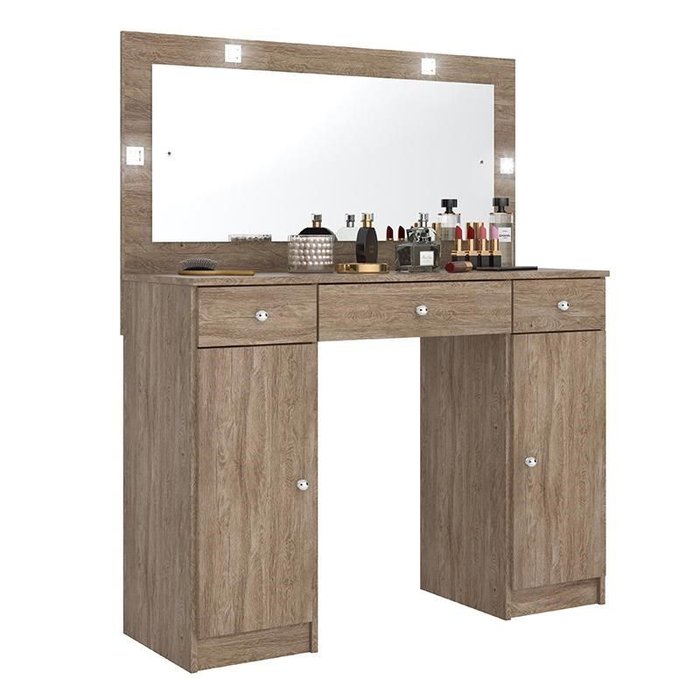 Penteadeira Camarim com Espelho, 3 Gavetas e 2 Portas Atlas Nogal Touch - Pr Móveis