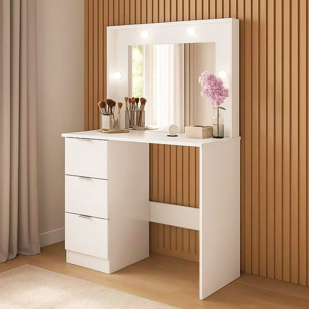 A penteadeira camarim Los Angeles veio para deixar seu ambiente mais lindo e facilitar seu dia a dia. Ela possui três gavetas grandes, com muito espaço, um lindo espelho iluminado e suporte para luzes. As lâmpadas não acompnham o produto, garantia de 03 meses.