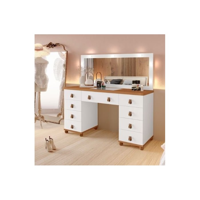 Penteadeira Camarim com Espelho 9 Gavetas Eloa Branco Nature