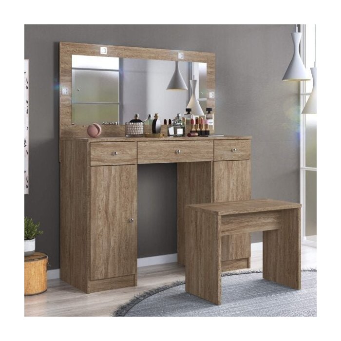 Penteadeira Camarim com Espelho e Banqueta 3 Gavetas e 2 Portas Carisma Espresso Móveis