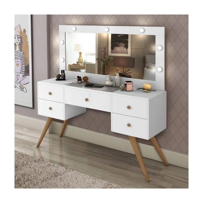 | Modelo | Penteadeira Camarim Espelho Led Retro 5 Gavetas |
