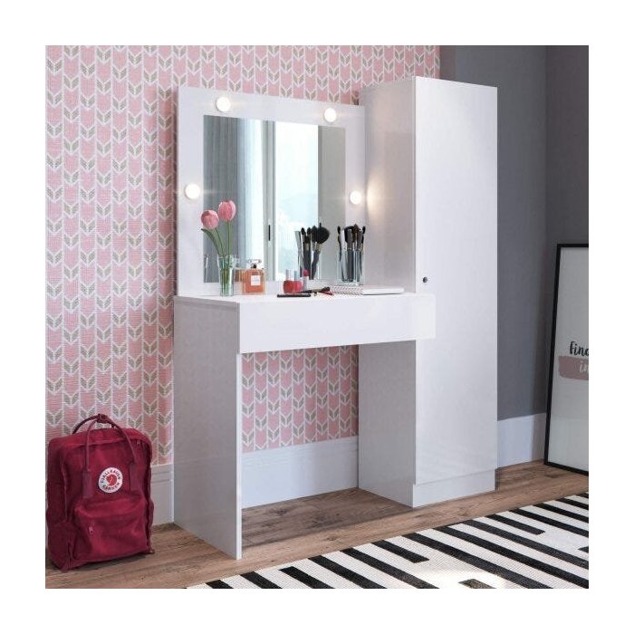 Penteadeira Camarim com Led Espelho Armário Alto e 1 Gaveta Chanel Espresso Móveis Branca