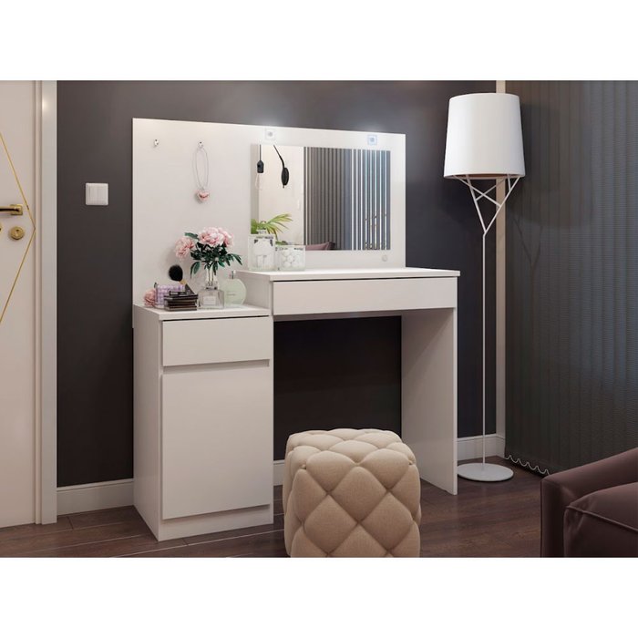 A Penteadeira Camarim Dress conta com LEDs junto ao espelho são ótimos para iluminar o rosto na hora de se maquiar, sem fazer sombra, uma gaveta