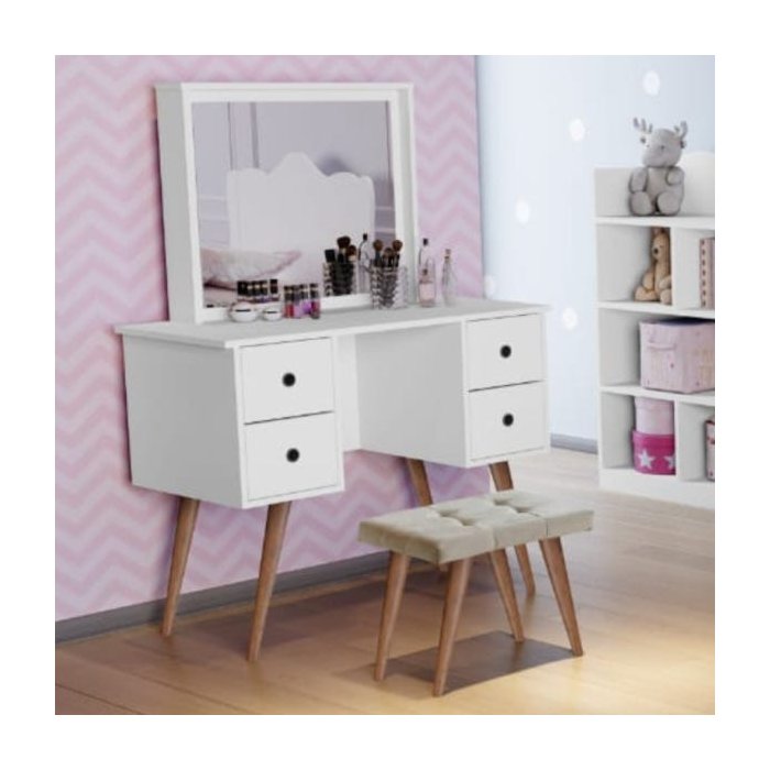 Penteadeira Camarim e Banqueta Juvenil Emily Branco