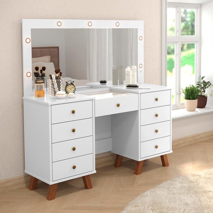 Penteadeira Camarim Eloá com Luz de Led e Banqueta Branco - Patrimar Móveis