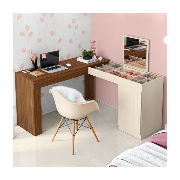 Penteadeira Camarim + Escrivaninha de Canto Prada Freijó|Off White