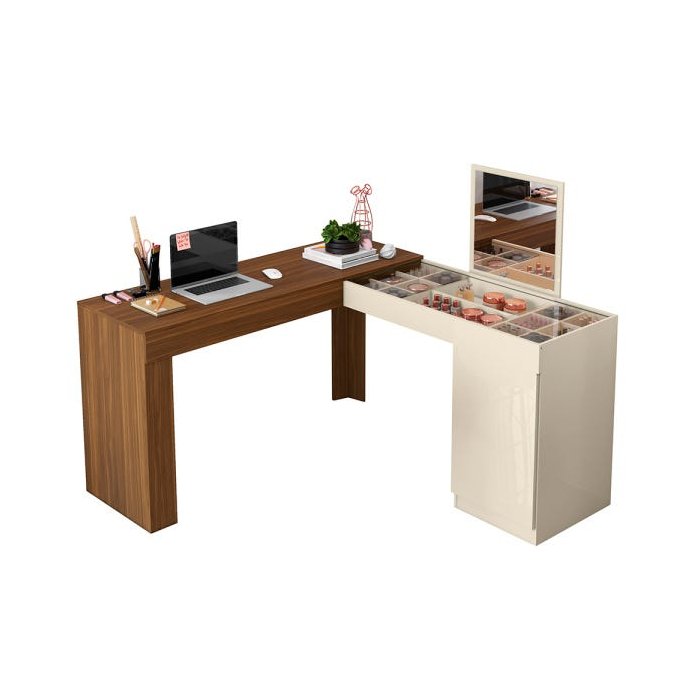 Penteadeira Camarim + Escrivaninha Prada Off White +Amadeirado- Com Design Inovador e Estilo Moderno. Vidros de Correr, Porta com 1 prateleira, Painel Fixo com Espelho e Nicho Organizador para objetos e Maquiagem. Lindo né!
