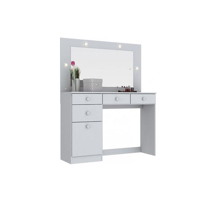Penteadeira Camarim Juvenil Chanel c/ 1 Porta e 4 Gavetas c/ Espelho Branco - Henn