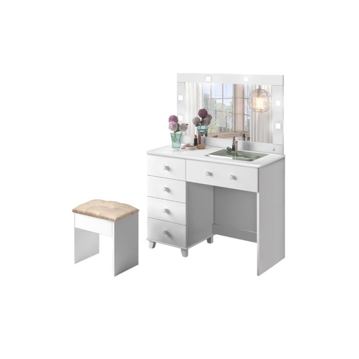 Penteadeira Camarim Lara Com Banqueta Branco – Potente Móveis