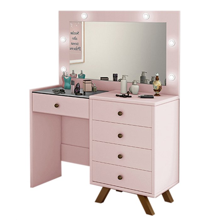 Penteadeira Camarim Lolla com Espelho e 5 Gavetas Rosê Rosê