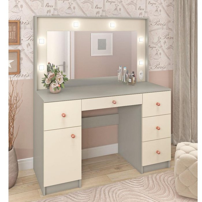Penteadeira Camarim Ravena com Espelho - Cinza/Champagne