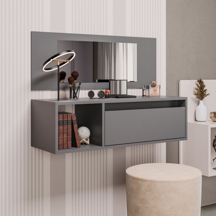 Penteadeira Camarim Suspensa 1 Porta Eva Grafite