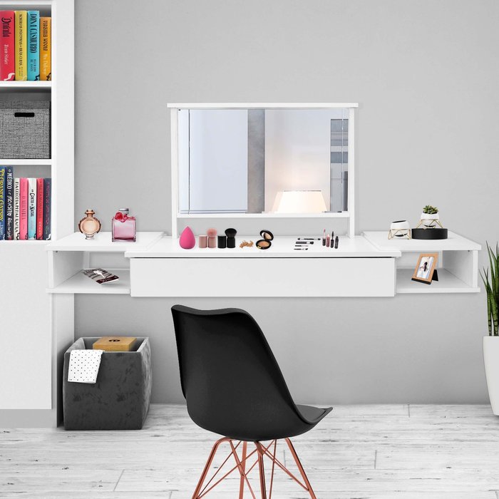 Penteadeira Camarim Suspensa com Espelho 2 Nichos 1 Gaveta Branco
