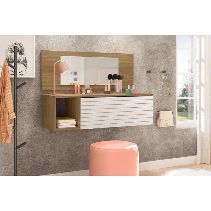 Penteadeira Camarim Suspensa com Espelho e Gaveta Joy - Branco/nature
