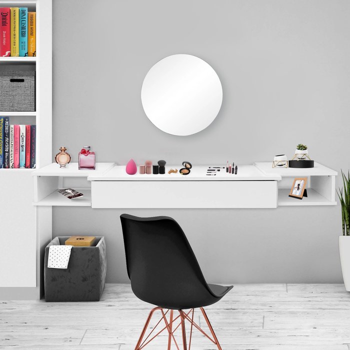 Penteadeira Camarim Suspensa Espelho Redondo Nichos Gaveta Branco