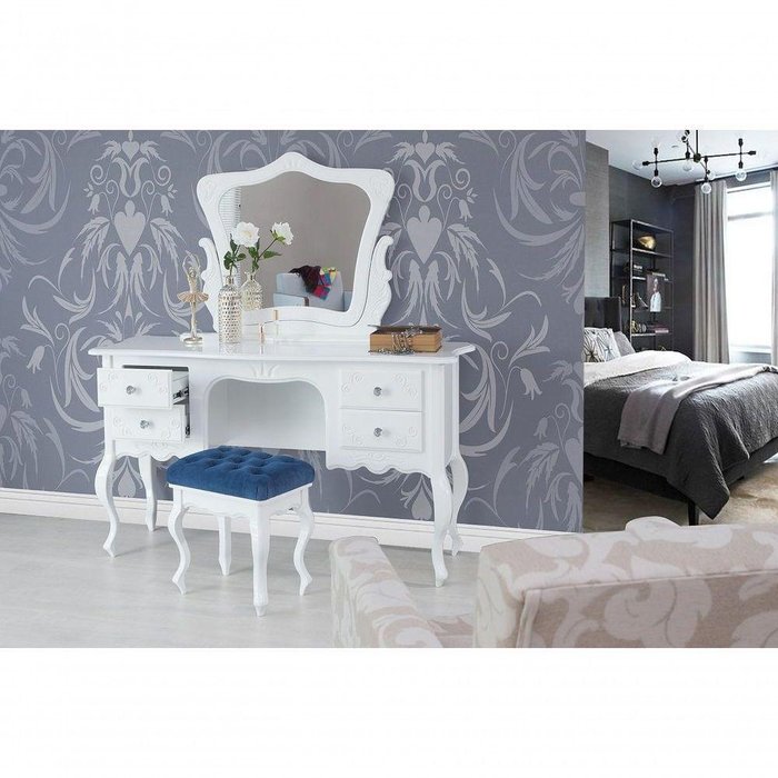 Penteadeira Clássica 4 Gavetas com Banco e Espelho - Fleischmann Branco - CRQ - Contando com um espelho, a penteadeira pode garantir um visual mais feminino ao ambiente. Além de reservar espaço para as maquiagens e cosméticos, este móvel ainda pode ser muito útil para armazenar itens pessoais como perfumes e bijuterias, facilitando o acesso a estes objetos. Você pode, inclusive, escolher a escrivaninha penteadeira de uma cor e investir em uma cadeira de acrílico transparente ou estofada, para dar mais conforto ainda a esse momento tão gostoso que é o de se maquiar ou fazer tarefas do dia a dia. Produzida em madeira maciça e MDF Ultra, com corrediças telescópicas, fixadores bi cromatizados, opuxadores de altíssima qualidade e um acabamneto finíssimo em laca.