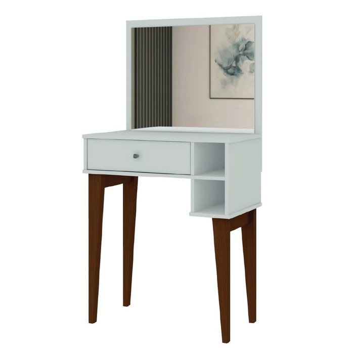 A Penteadeira Laura é a combinação perfeita de estilo e funcionalidade! Seu design moderno se encaixa perfeitamente em qualquer ambiente, economizando espaço com sua estrutura compacta. Com uma gaveta espaçosa e dois nichos inteligentemente projetados, você terá espaço suficiente para organizar todos os seus produtos de beleza! Confeccionada com materiais de qualidade que garantem sua durabilidade e resistência. Ganhe mais tempo e charme na hora de se produzir.
