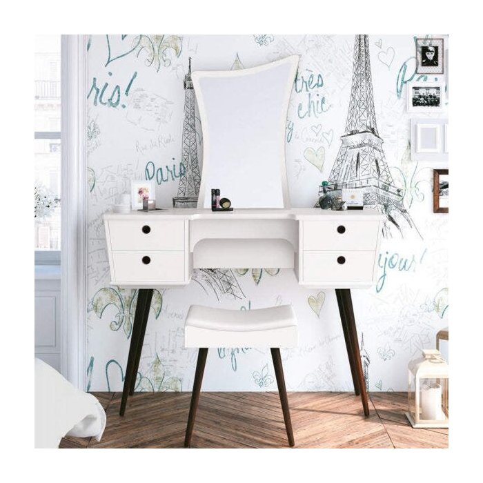 Penteadeira com Espelho 4 Gavetas Edn Móveis Branco