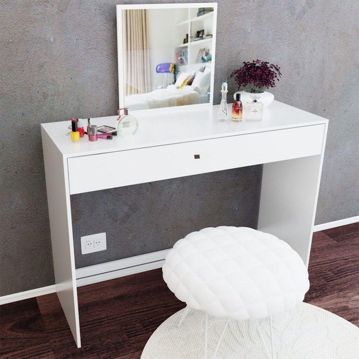 Penteadeira Com Espelho Embutido E Gaveta Branca