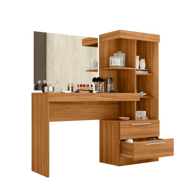 Com dupla funcionalidade a Penteadeira e Escrivaninha chegou para facilitar e organizar seu dia a dia. Ela possui espelho, 4 nichos e 2 gavetas para organizar seus perfumes, maquiagens e acessórios. Ao mesmo tempo, é escrivaninha para as horas de estudo ou home office.