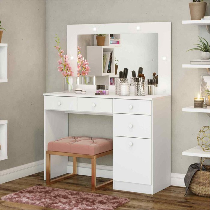 Você vai conseguir organizar seus produtos de cuidados com a pele, cuidados com o corpo, maquiagens, perfumes e escolher aquela roupa para qualquer evento. Ela pode ser montada em qualquer ambiente como quartos, closets e estúdios.