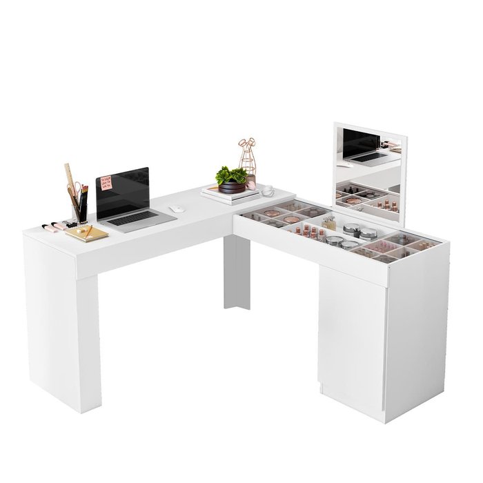 Penteadeira de Canto com Escrivaninha Estrela com Espelho e Divisórias - Edecasamoveis Estrela - Branco Fosco