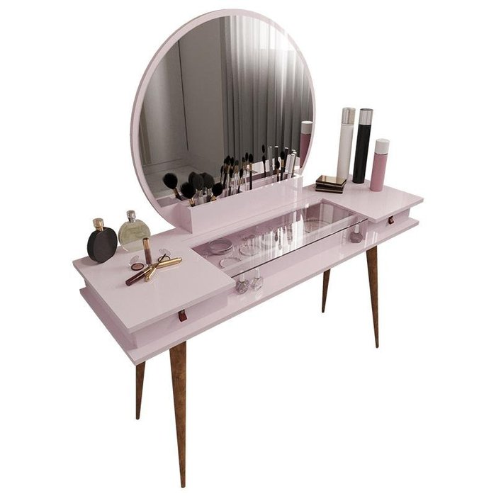 Penteadeira Diana Com 2 Gavetas Porta de Vidro e Nichos Rose