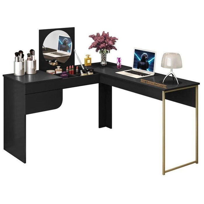 Penteadeira Escrivaninha Camarim Com Espelho Alexa Preta Mobler Preto