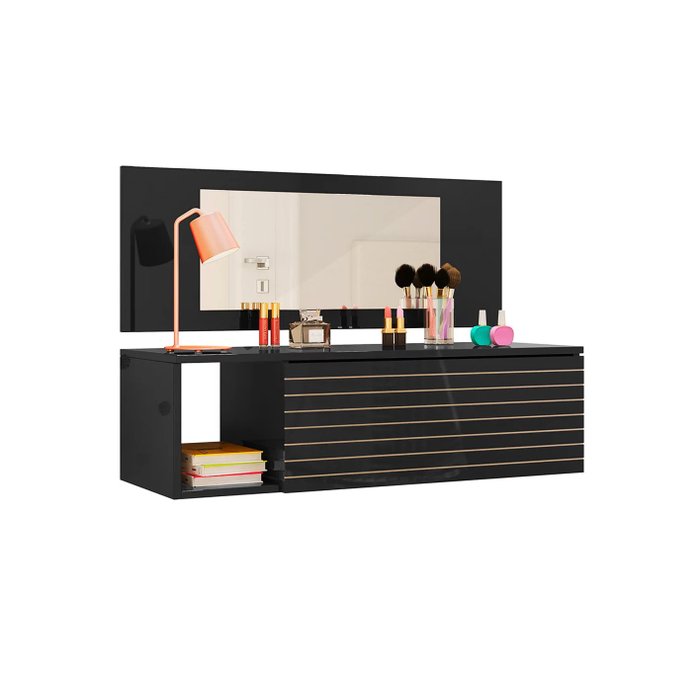 Penteadeira Escrivaninha Camarim Joy 1 Gaveta e Espelho:Preto