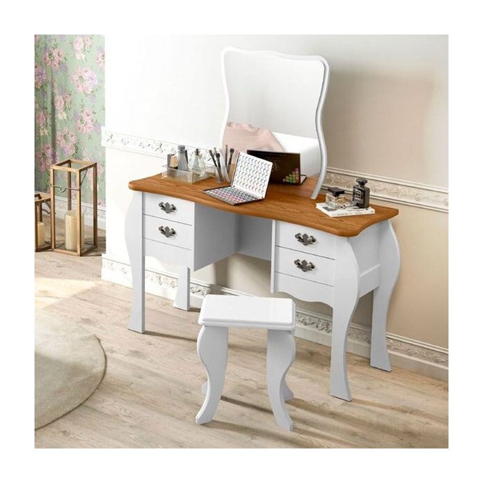 Penteadeira Espelho 4 Gavetas Duda Branco/Cumaru